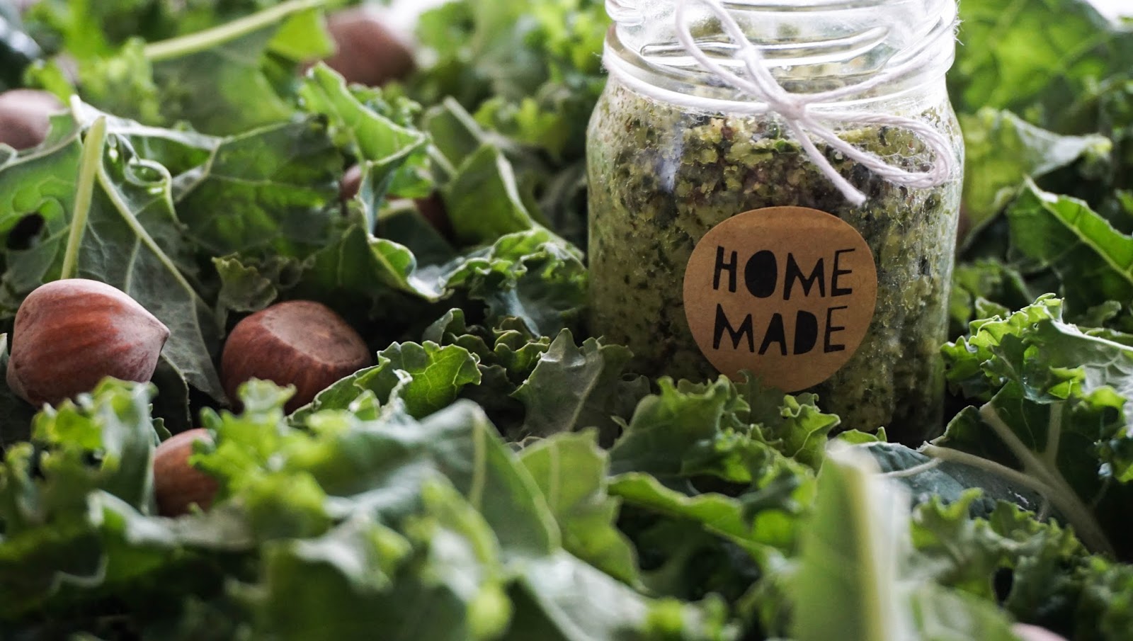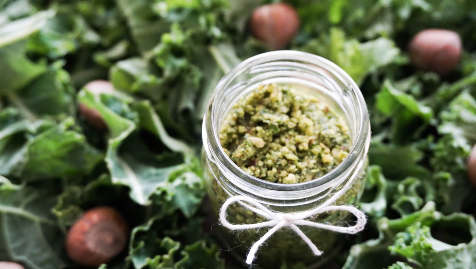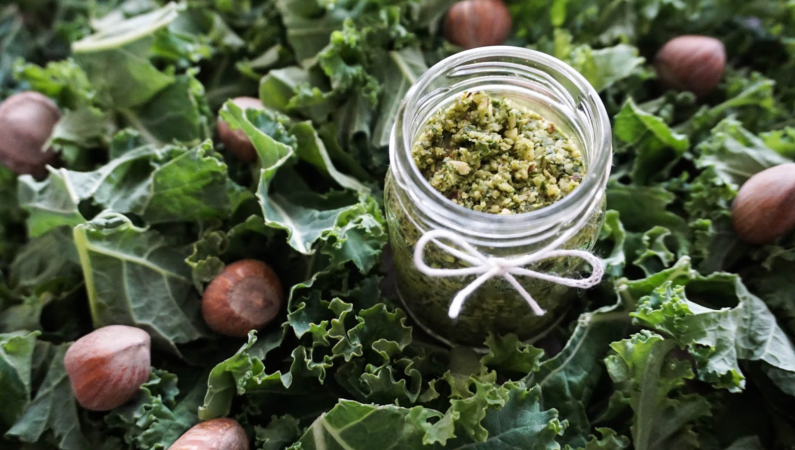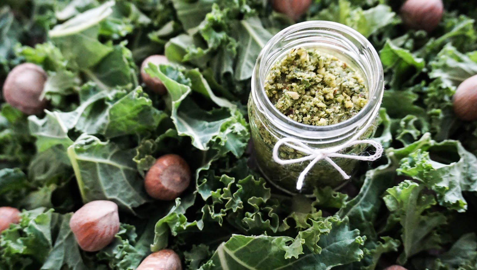 Są takie dni, kiedy niewiele jest czasu na przygotowanie obiadu, więc potrzeba czegoś szybkiego w wykonaniu i przy tym na tyle pysznego, żeby zaspokoić głód i nabrać energii na dalszą część pracowitego dnia. Myślę, że zwłaszcza studenci, grono do którego również się zaliczam, szczególnie docenią pomysł szybkiego obiadu, w końcu głodny student to zły student :)) Pod noże blendera poszły więc liście jarmużu oraz równie charakterystyczne smakowo orzechy laskowe. Kilka minut obrotów i mamy fantastyczne zielone* pesto.