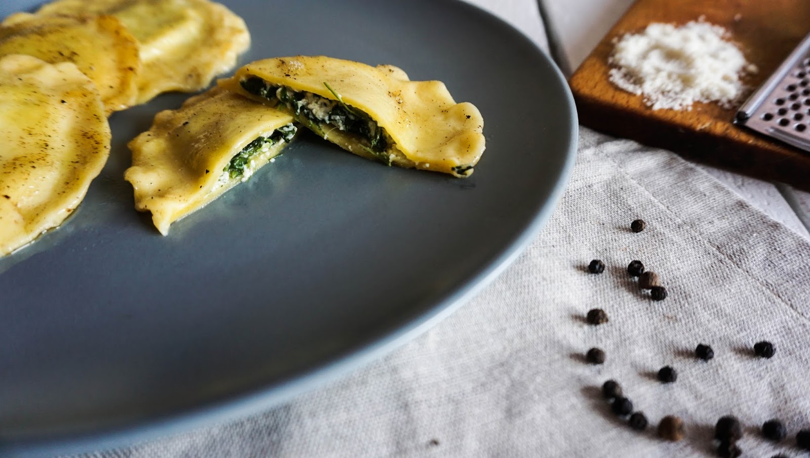 Uzyskanie odpowiedniej konsystencji ciasta na ravioli zajęło mi wiele czasu. To przede wszystkim eksperymentowanie z proporcjami wydłużało moją drogę do perfekcji – ciasta odpowiednio gładkiego, miękkiego podczas ugniatania i idealnie jędrnego po ugotowaniu. I w końcu się udało!